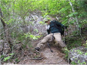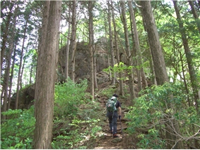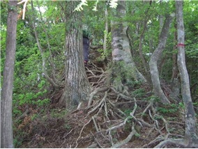 | 予想以上の時間と体力消耗で岩古谷山を あきらめ十三曲がりを通り下山 |
