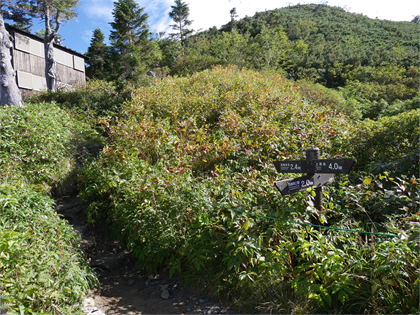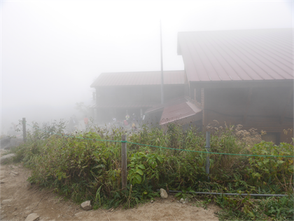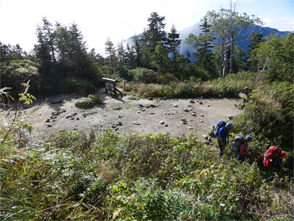 | 思ったよりも狭いテント場(すでにテントは無し) | 山荘は素通りして独標へ |