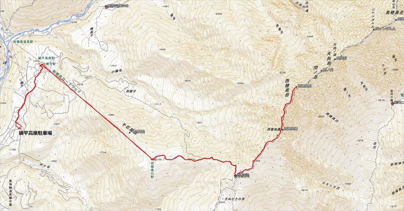 | 西穂高岳 → 西穂独標 → 新穂高ロープウェイ → 鍋平高原駐車場 | |