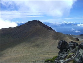 | 10:36 継母岳 | 10:42 尾根から望む剣ヶ峰 | |