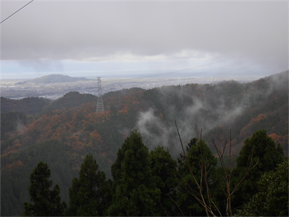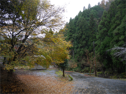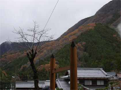 | 十二相神社(明智の旗に気を取られ、登山口を見落とした) | まだ紅葉が残っている |