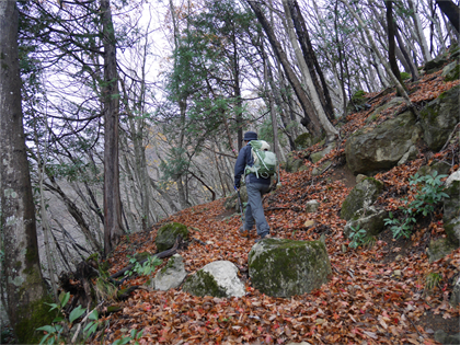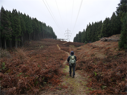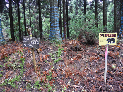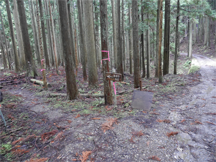 | 平坦な地形に変わる | 9:30 南後谷分岐(林道に出る) |