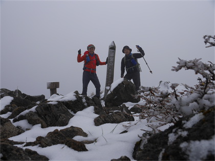 | 山頂は真っ白で景色も望めず、かなり寒いため写真撮影だけで即下山することにした。 | |