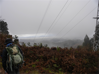 | 真っ白で何も見えず、かなり寒い | 9:57 高室山 818m(倉骨山も諦め即下山することにした) |
