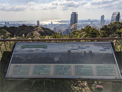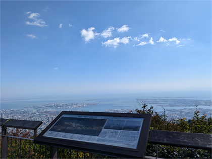 | 山頂の景色は最高で、港と神戸や大阪の街並みが一望できる。 | |