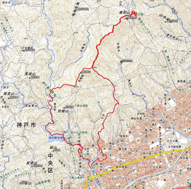 | コース | 新神戸駅 → 布引貯水池 → 摩耶山 → 学校林道 → 雷声寺 → 駐車場 |