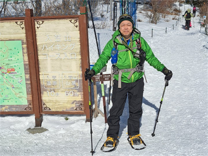 | 履きしてみた。スノーシュー登山が人気になっているが、登山道は軽アイゼンでも十分な道。 |