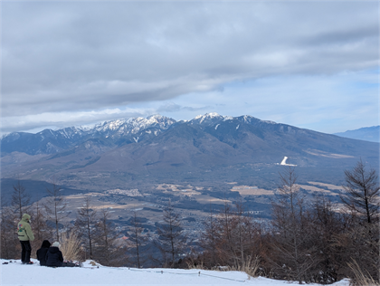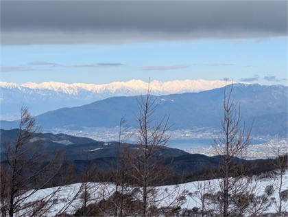 | 富士山こそ見られなかったが、八ヶ岳、南、北、中央アルプスの絶景が見られて、十分に楽しめた。 |