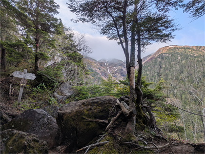 | 蛙岩の上に蛙かな | 晴れてはいるが山頂付近のガスは濃い |