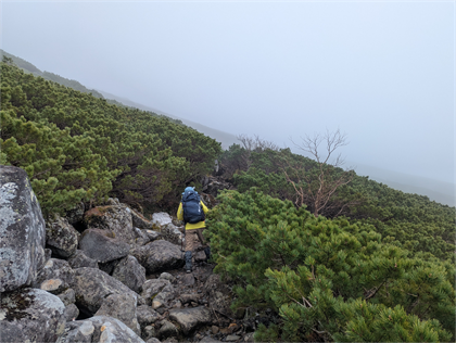 | 7:50 八合目 | 森林限界のハイマツ帯になってきた |