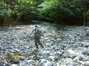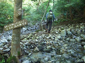 | 林道を進むとガレ場に出る | 9:46 一の谷 | 9:51 二の谷 |