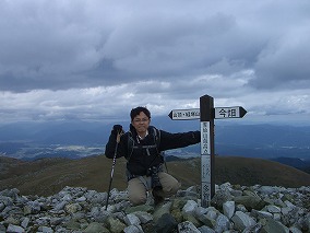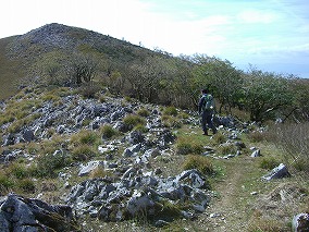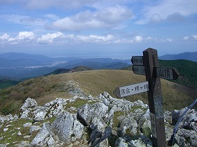 | 正面に見えるのが最高点 | 13:08 最高点(1098m) | 最高点から望む伊吹山(手前避難小屋) |