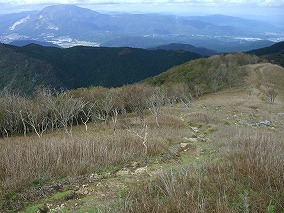 | 11:38 四丁横崖(八合目) | 四丁横崖を過ぎると笹原になる | 笹原からは伊吹山が綺麗に望める |