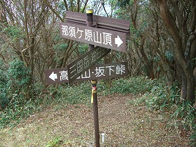 | 12:27 油日岳まで3時間の案内 | 12:34 三ツ頭山 | 12:55 那須ヶ原山への分岐 |