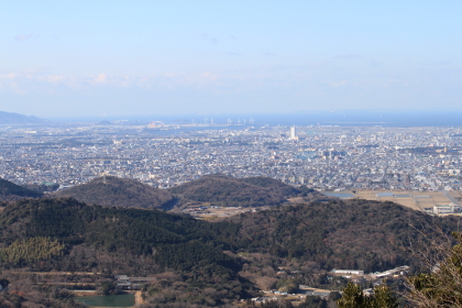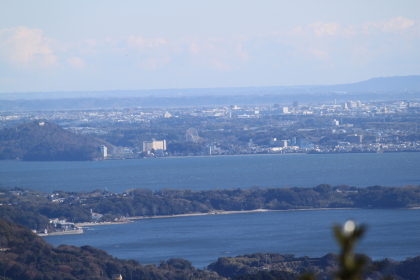 9:55 座談山 浜名湖の奥に富士山が見える |