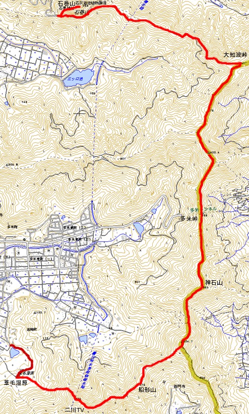 葦毛湿原 → 船形山 → 神石山 → 多米峠 → 大知波峠 → 石巻山 |