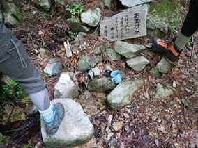 | 10:51 林道出合 | 林道を横切ってすぐに登り口 | 10:58 お助け水(冷たくて美味しかった) |