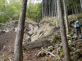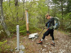 | 11:03 分岐まで戻り山頂へ | 11:07 七合目 | 途中崩壊しており巻道になっている |