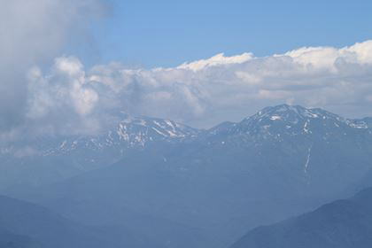 | 9:08 山頂まで2km | 9:25 白山が見えてきた | 奥に荒島岳 |