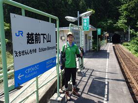 | 無人駅で電車もレトロな感じ | 無事に乗れて良かった^^ | 14:12 越前下山駅着 |
