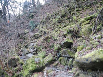 一面に苔むした岩 |