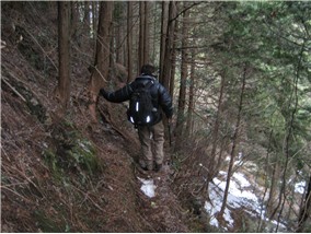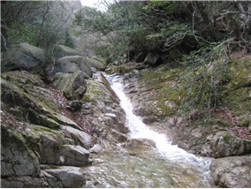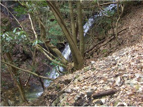 | 落ちそうなぐらい細い道が続く | 15:50 最後の沢を渡ると登山口へ | 15:54 仙ヶ谷登山口へ到着 |