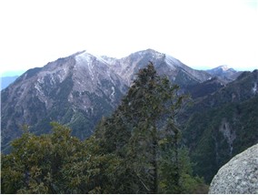 | 東海展望から仙ヶ岳、野登山を望める | 東海展望から望む三体仏岩、犬返しの険 | 12:05 宮指路岳山頂 三等三角点 |