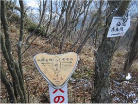 | 14:37 仙の石 | 14:39 分岐点 仙鶏尾根へ | 15:03 小岐須方面へ |