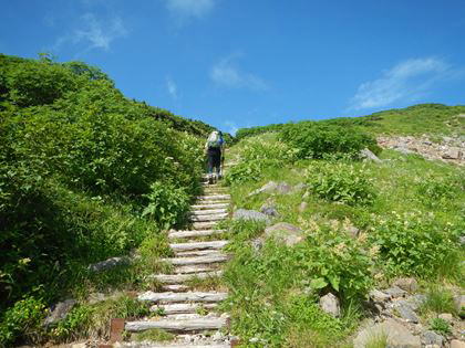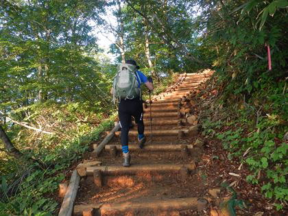 | 階段の登山道がかなり多い | 7:04 登山口から3.0km地点 |