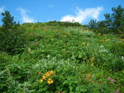 | 8:03 登山口から5.0km地点 | 色とりどりのお花畑 |