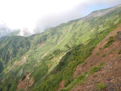 | 山頂が綺麗に見える | 先に見えるのは別山に続く尾根 |