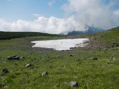 | 8:26 カンクラ雪渓 | 途中崩落しており巻き道へ行く |
