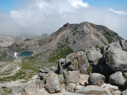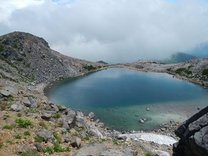 | 紺屋ヶ池 | 紺屋ヶ池から振り返った御前峰 |