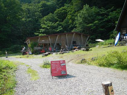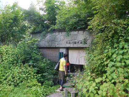 | 駐車場横にある白水湖畔ロッジで入浴受付 | 大白川露天風呂 |