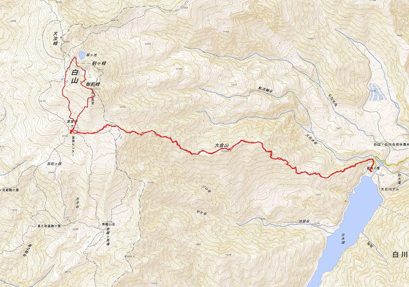 | 翠ヶ池 → 血ノ池 → 千蛇ヶ池(近道) → 室堂 → 大倉山 → 大白川駐車場 | |