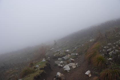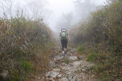 | 9:47 3合目 濃霧で10m先が全く見えない状態 | 10:06 5合目 |