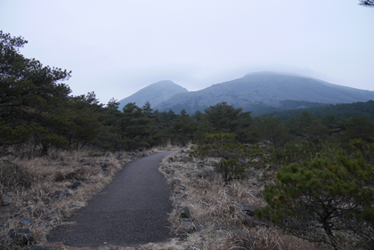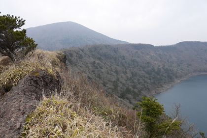 | 新燃岳も同じ目線に | 東回りルートから見た韓国岳 |