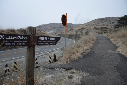 | 6:59 道路に出たところから登りになる | 硫黄山は立入禁止 |