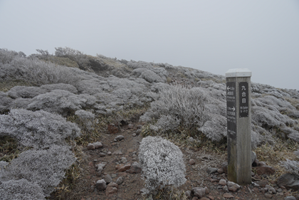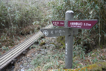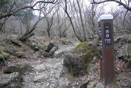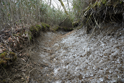 | 9:04 やっと木の階段が終わる(一面霜柱) | 9:07 東回り、西回り分岐 |