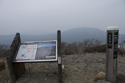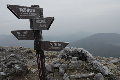 | 7:36 五合目 | 韓国岳と大浪池の案内板 |