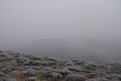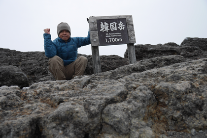 | 8:04 韓国岳(セルフ撮影中強風でカメラが転がり傷だらけに) | 三角点 |