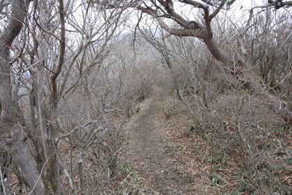| ガスが濃く大浪池がかすかに見える程度 | 8:02 分岐 |