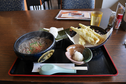 | 足湯の駅で昼食に | おろしそばと鳥天ぷら |