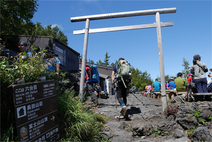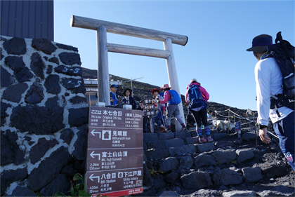 | 7:12 御来光館(八号五勺 3450m) | すぐ上に九合目の鳥居が見える |
