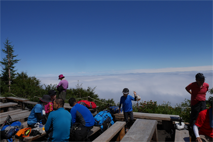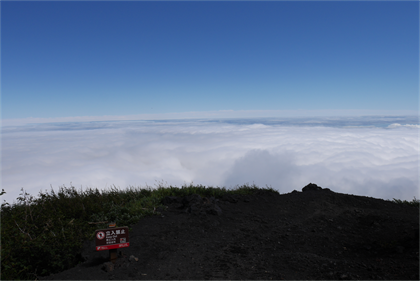 | 雲の上に出て晴天が広がる | 13:25 瀬戸館(本六合目 2700m) |