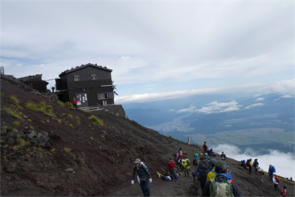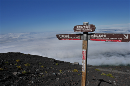 | 6:56 本八合目 3370m | 吉田ルートと合流で人だらけ(外人さんばかり) |