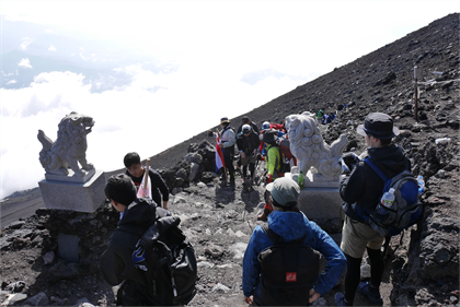 | 7:40 九合目 3600m | 8:15 狛犬がお出迎え |