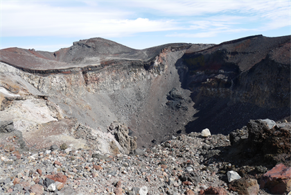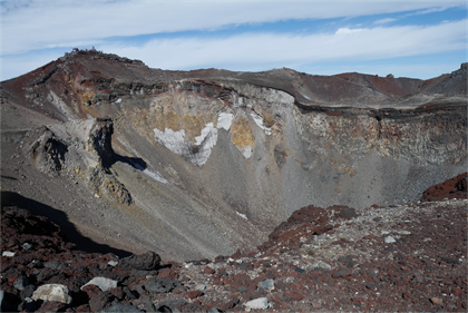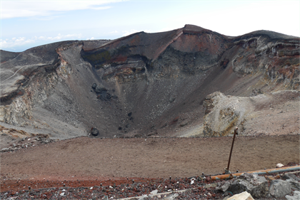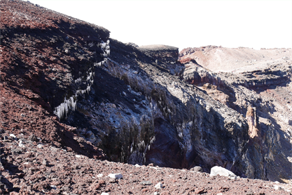 | 火山らしい雰囲気 | 火口に沢山の氷柱 |