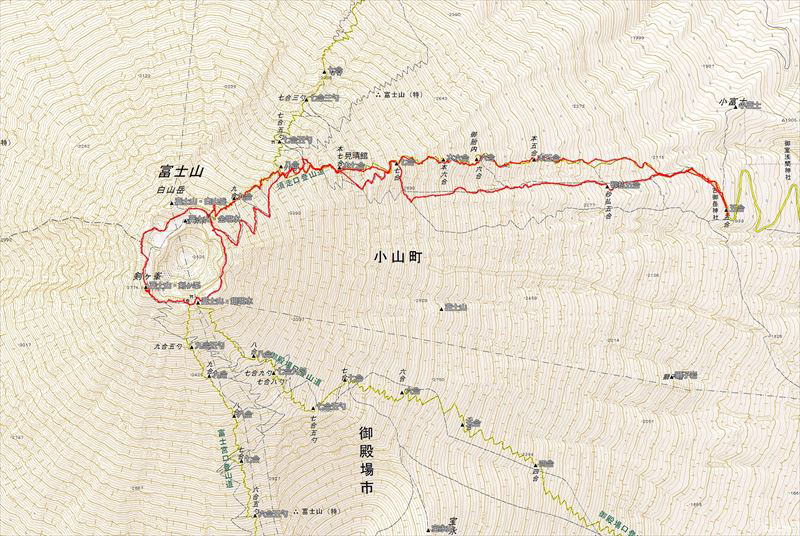 | 見晴館 → 須走口頂上 → 剣ヶ峰 → 須走口下山道 → 見晴館 → 砂払五合目 → | |
