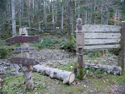 | ほとんどの人が甲斐駒か仙丈へ行く中、1人林道を進む | 分岐を長衛小屋方面へ |